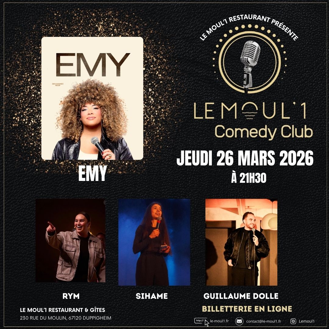 Jeudi 26 mars 2026, EMY prend les commandes de la soirée, entourée d’une équipe survoltée pour un show 100 % stand-up, 100 % rires, 0 % répit !